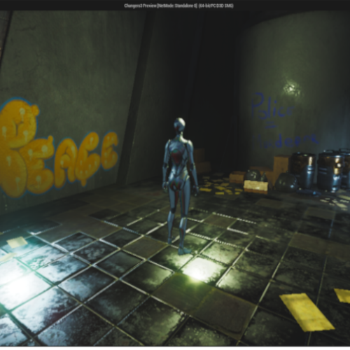 Il giocatore, dopo aver navigato tra le strade distopiche della città, finalmente arriva a una zona industriale isolata, dove enormi fabbriche svettano come giganti di metallo. L’aria è carica di un odore di olio e bruciato, e il suono costante di macchinari e motori invadono il paesaggio. Le luci sono fredde, intermittenti, come se l’intero luogo fosse sotto il controllo di una forza che non permette alcuna emozione umana. Tra le ombre che ci sono nella fabbrica, il giocatore si ferma davanti a una statua gigante, l’ambiente è silenzioso, in contrasto con il frastuono che percepiva fuori. La fabbrica è deserta, ma la sua maestosità non lascia dubbi sul fatto che sia ancora in funzione. Ad un certo punto, davanti a lui si apre una porta segreta, che svela una sala circolare, completamente illuminata da faretti artificiali. Al centro della stanza c’è una gigantesca macchina, il cui scopo sembra essere quello di elaborare.